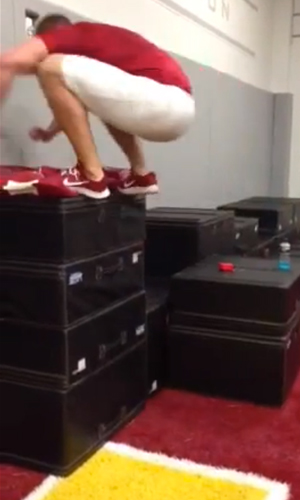 . Here is a video. He has raised the bar even higher for his yearly offseason box jump videos. Web Feature Vignette.